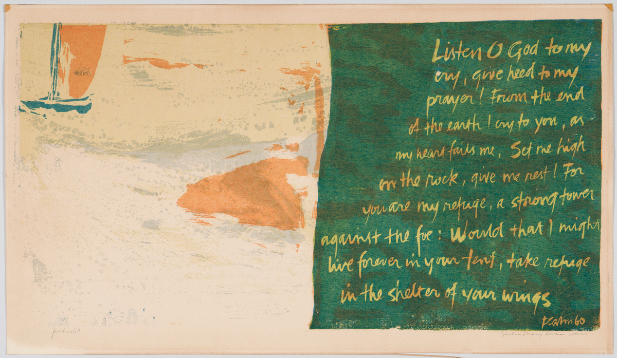 Listen O God to my cry, give heed to my prayer! From the end of the earth I cry to you, as my heart fails me, set me high on the rock, give me rest! For you are my refuge, a strong tower against the foe: Would that I might live forever in your tent, take refuge in the shelter of your wings.