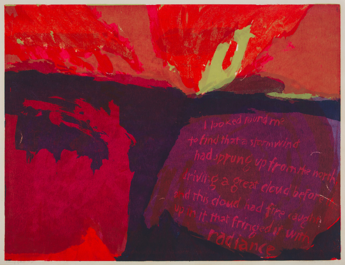 I looked round me to find that a storm wind has sprung up from the north, driving a great cloud before it and this cloud had fire caught up in it, that fringed it with radiance