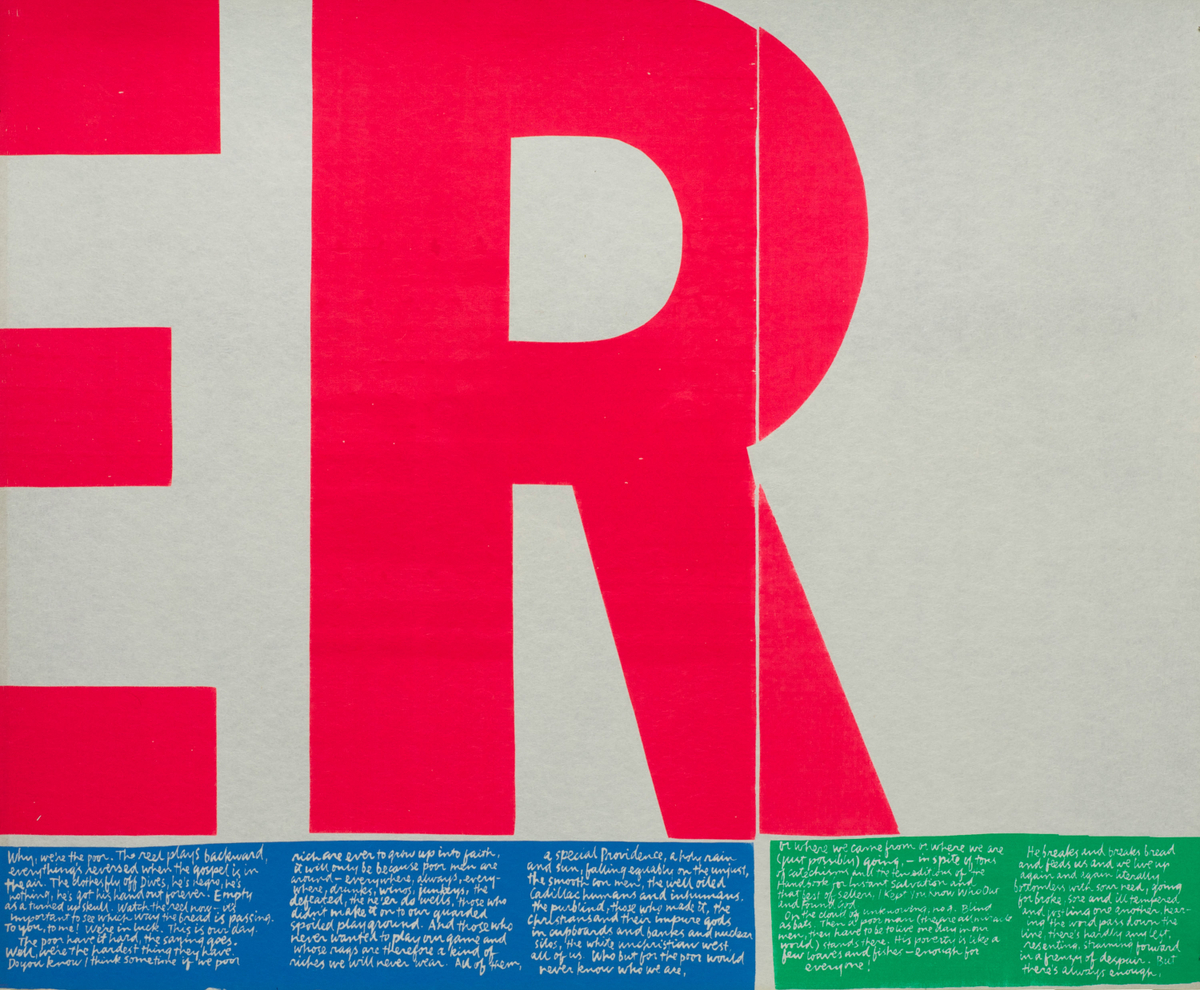 E RWhy we're the poor. The reel plays backward, everything's reversed when the gospel is in the air. The clothes fly off Dives, he's negro, he's nothing, he's got his hand out forever. Empty as a turned up skull. Watch the reel now--it's important to see which way the bread is passing. To you, to me! We're in luck. This is our day. The poor have it hard, the saying goes. Well, we're the hardest thing they have. Do you know I think sometime if we poor rich are ever going to grow up into faith, it will only be because poor men are around--everywhere, always, everywhere, drunks, winos, junkeys, the defeated, the ne'er do wells, those who didn't make it on to our guarded spoiled playground. And those who never wanted to play our game and whose rags are therefore a kind of riches we will never wear. All of them, a special Providence, a holy rain and sun, falling equably on the unjust, the smooth con men, the well oiled Cadillac humans and inhumans, the purblind, those who made it, the Christians and their impure Gods in cupboards and backs and nuclear silos, the white unchristian west, all of us. Who but for the poor would never know who we are, or where we came from or where we are (just possibly) going,-- inspite of tons of catechisms and the ten edition of the Handbook for Instant Salvation and the best of sellers, I Kept You Know Who Out and Found God.On the cloud of unknowing; hog blind as bats. Then a poor man (they are all miracle men, they have to be to live one day in our world) stands there. His poverty is like a few loaves and fishes--enough for everyone! He breaks and breaks bread and feeds us and we live up again and again literally bottomless with sour need, going for broke, sore and ill tempered and jostling one another, hearing the word pass down the line, there's hardly any left, resenting straining forward in a frenzy of despair. But there's always enough.