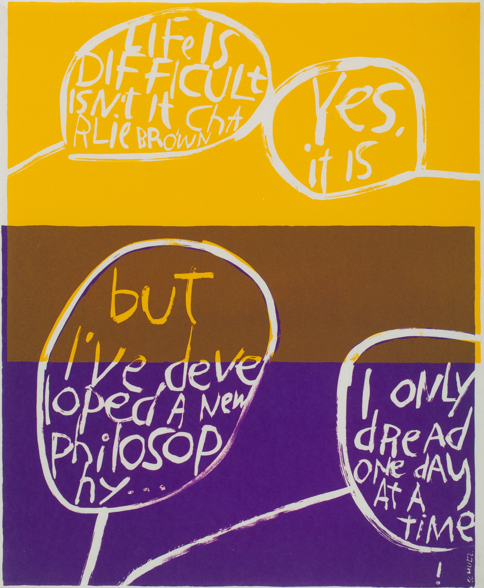Life is difficult isn't it Charlie BrownYes, it isbut I've developed a new philosophy...I only dread one day at a timeSchulz