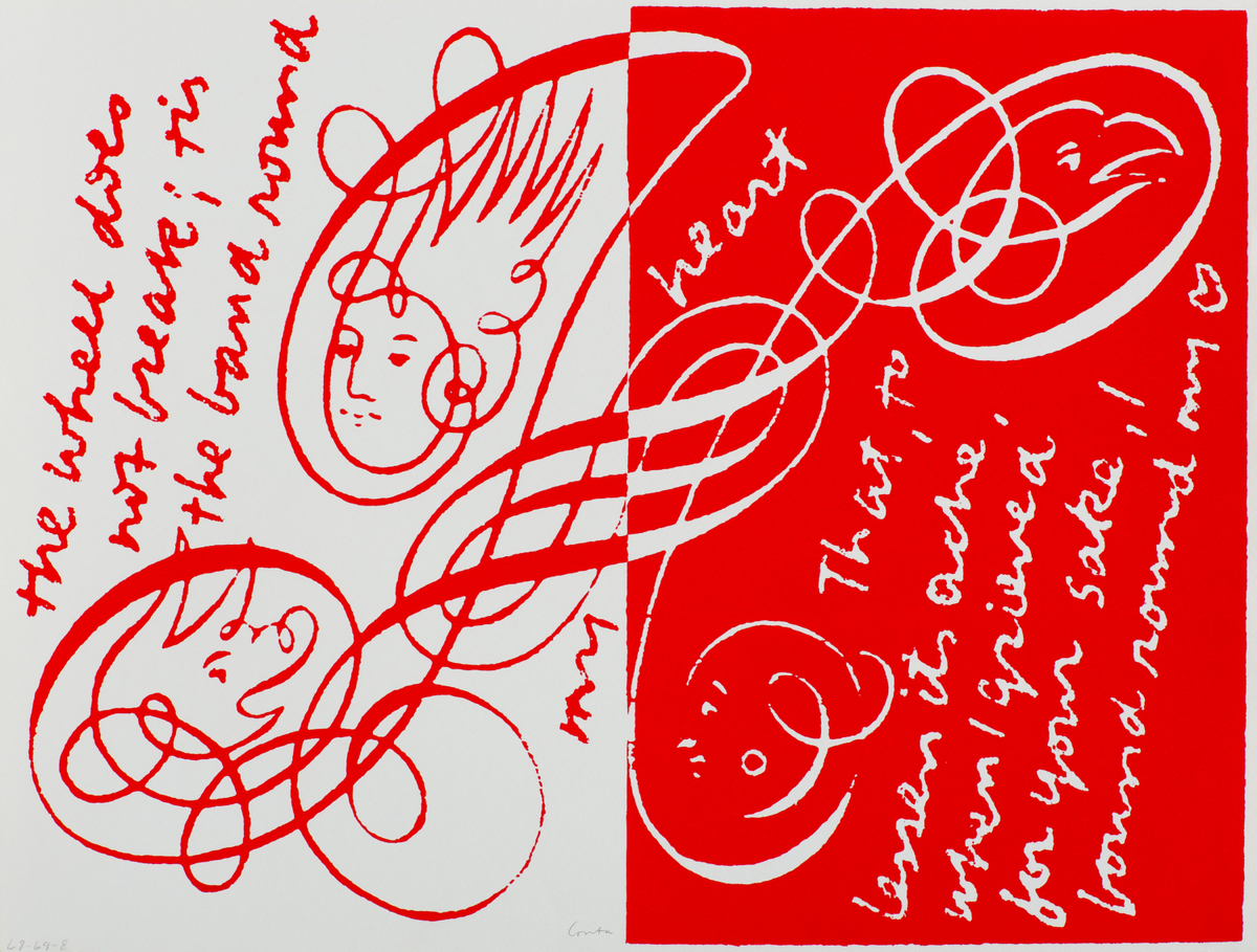 The wheel does not break; 'tis the band round my heart that, to lessen its ache, when I grieved for your sake, I bound round my (heart symbol)
