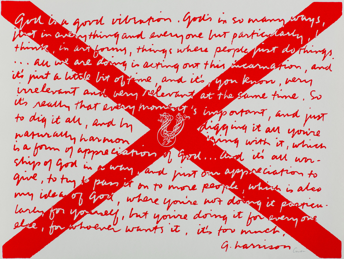 God is a good vibration. God's in so many ways, just in everything and everyone but particularly , I think, in art forms, things where people just do things...all we are doing is acting out this incarnation, and it's just a little bit of time, and it's, you know, very irrelevant and very relevant at the same time. So it's really that every moment's important, and just to dig it all, and by digging it all you're naturally harmonizing with it, which is a form of appreciation of God...and it's all worship of God in a way, and just our appreciation to give, to try to pass it on to more people, which is also my idea of God, where you're not doing it particularly for yourself, but you're doing it for everyone else, for whoever wants it, it's too much.G. Harrison