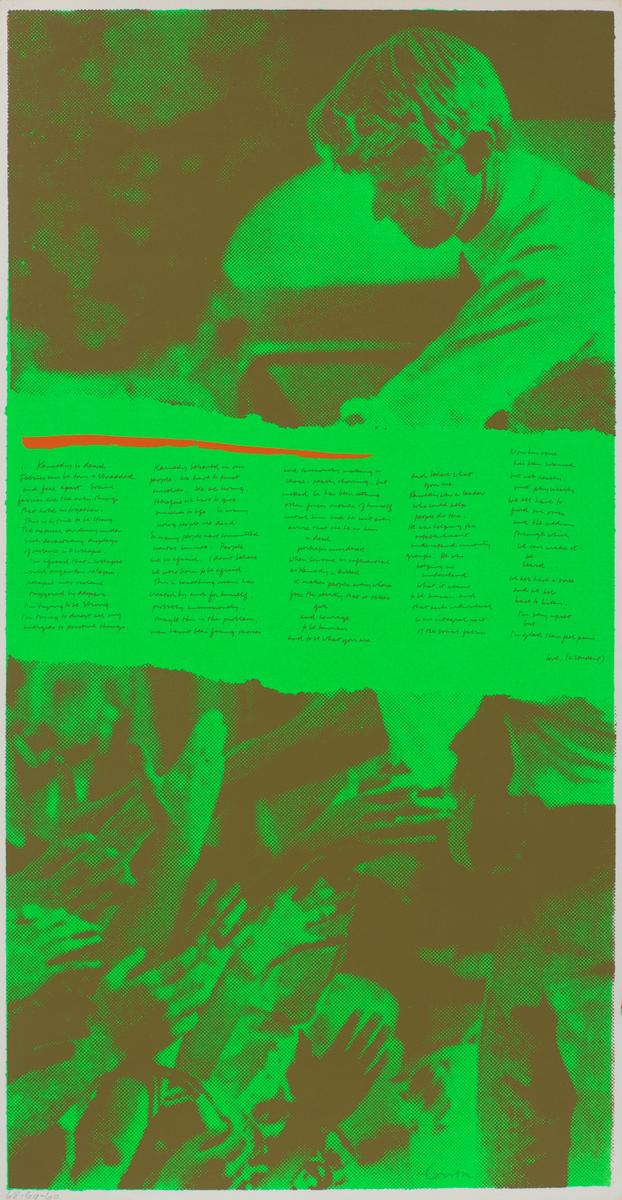 ...Kennedy is dead. Fabrics can be torn & shredded and fall apart. Social fabrics are the only thing that hold us together. This is a time to be strong. The national tendency under such devastating displays of violence is to collapse. I am afraid that a collapse would engender relapse, relapse into violence triggered by despair. I'm trying to be strong. I'm trying to direct all my energies to positive things. Kennedy believed in our people. We have to trust ourselves. We are living, therefore we have to give ourselves to life. So many living people are dead. So many people have commited mental suicide. People are so afraid. I don't believe we were born to be afraid. This is something man has created by and for himself, probably unconsciously. Maybe this is the problem, man hasn't been facing choices and consciously making a choice---really choosing, but instead he has been letting other forces outside of himself control him and he isn't even aware that the he in him is dead perhaps murdered. When someone as influential as Kennedy is killed it makes people every where face the reality that it takes guts and courage to be human and to be what you are and believe what you are. Kennedy was a leader who could help people do this. He was helping the establishment understand minority groups. He was helping us understand what it means to be human and that each individual is an intergral part of the social fabric. Now his voice has been silenced but not really just physically. We all have to find our voice and the medium through which we can make it be heard...We all have a voice and we all have to listen. I'm very upset but I'm glad I can feel pain.Love, (a student)